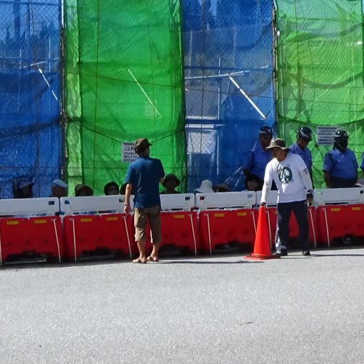The previous day, 30 persons visited the Okinawa Defense Bureau and inquired about a legality of protesting the newly installed barricades, and the Okinawa Defense bureau emphasized that there is no legal problem with occupying the road.