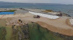 (Photo taken Feb. 23, 2019, from a Kyodo News plane shows the relocation site for U.S. Marine Corps Air Station Futenma in the Henoko coastal district of Nago.)