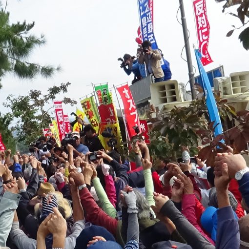 It is the day when the East Japan Earthquake and the subsequent accident in a Nuclear Power Plant happened 8 years ago. Memorial services were held in many parts of Japan. Here, in front of the Gate, we prayed in silence for the victims at the same time as the earthquake occurred, 12:46pm. Over 22 thousand victims includes those who died and 2533 who are still reported missing. Over 50 thousand people still live in shelter. A US military base for which Japanese government spends trillions of yens, while leaving 50 thousand Japanese still in shelter now after 8 years. The administration has lost its balance in deciding what is important. A man spoke angrily to a microphone.