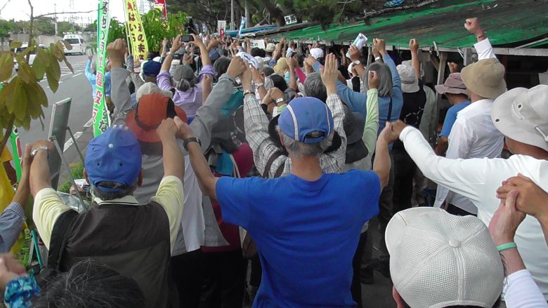 Representative Hiroshi Ashitomi of the Helicopter Base Objection Association said, “Many of us Okinawans must come together at the site of the struggle.” He brought up that people across Japan are calling for Henoko construction to stop: “All-Okinawa’s fight has also spread to the mainland. Let’s concentrate the people’s power as one and tackle this problem.”