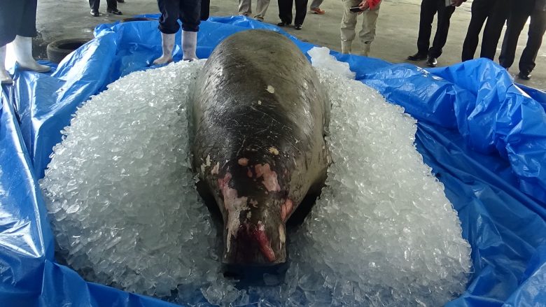 The dugong was discovered March 18 after washing ashore in the breakwaters of Untengyo Bay. There was blood and cuts around the head and fins. The Okinawa Defense Bureau (ODB) has stated that the dugong was “Specimen B” one of three dugongs that have been confirmed to inhabit the waters near Okinawa and who made its habitat near the village.