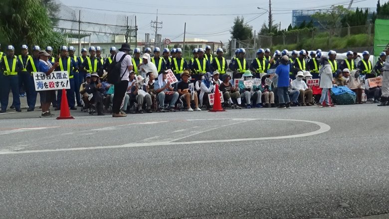 Total 199 dump trucks of three separate convoys passed through the gate to bring in the construction materials into the base throughout the day. Today marked the 1900th day of the sit-in protest at the Camp Schwab Gate.