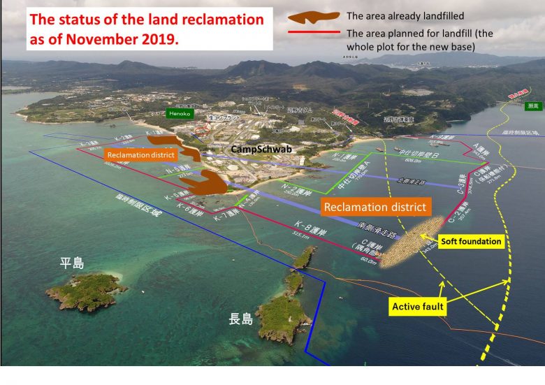 The Abe Administration may be intentionally working slowly along the shallow water of Henoko to kill the time because it requires at least 13 years by the Defense Bureau’s estimate to stabilize the soft seabed in the Oura Bay. However, engineering experts estimate that it will take 20 years.