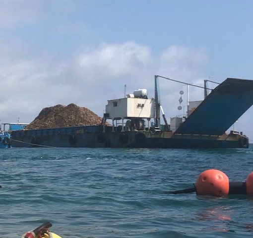 Several people protested the entire day against the deliveries of landfill soil. Five members of “GoGo Drive” joined the rally and hindered the deliveries by driving up and down the public road. It was 24 degrees centigrade and nice and warm, which one would not expect it to be January. But it became uncomfortable due to the truck exhaust gas. 428 deliveries were made. 3 cargo ships left the bay.