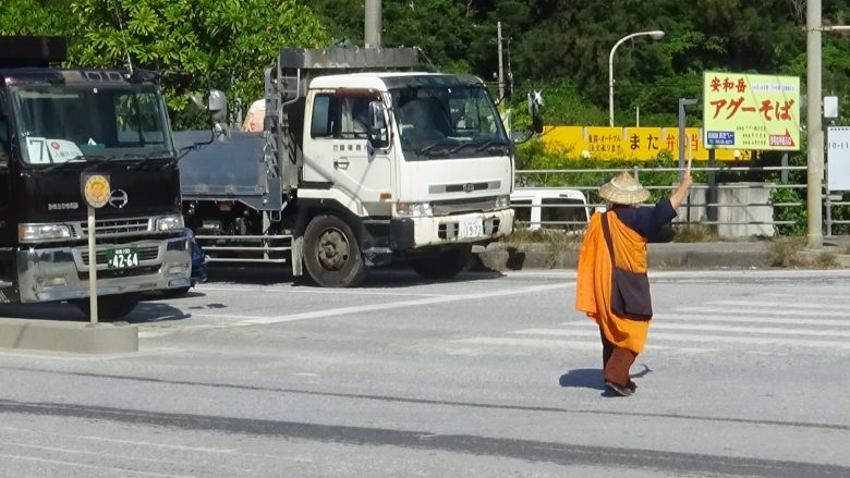 Dump trucks resumed to make the left turn to enter the pier. The “agreement” made with Hiroshi Yamashiro last week was dismissed in two days. As dump trucks were coming from the both left and right sides of the road, the protesters had to work without any break.
