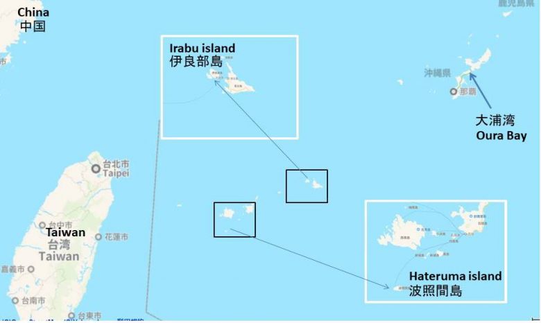 Feeding traces of dugongs were discovered around the islands of Irabu and Hateruma, quite a distance from the Okinawa Main Island. The Ministry of the Environment conducted surveys using drones and divers in February and March this year. The results confirmed 64 feeding traces around Irabu and 4 around Hateruma. Based on the survey results, the Ministry concluded that, “a possibility is high that dugongs inhabit the area because the feeding traces were of recent date”.
