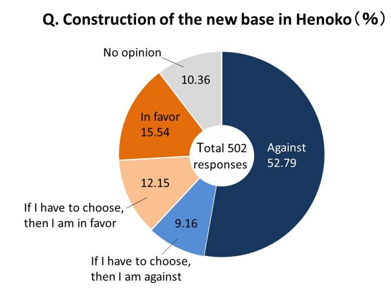 According to an opinion poll conducted by a nation-wide base newspaper, approval for the prime minister sharply dropped, roughly from 40% down to 20% (27-29%). The drop was bigger in Okinawa prefecture, down to 19%, and it was the lowest ever since the beginning of the current Abe administration. Furthermore, the poll revealed that 61% was against the construction of the new base in Henoko, which indicates Okinawans’ strong and firm opposition.