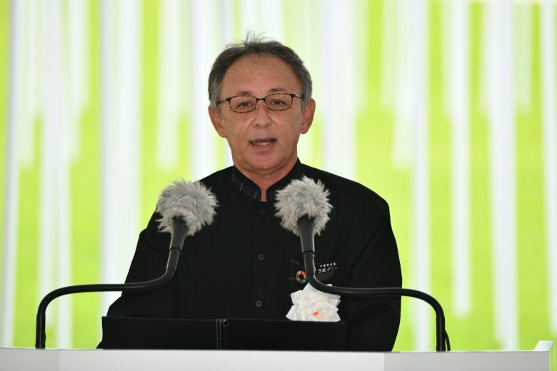 The governor spoke on Nago City’s Henoko/Oura Bay, where the new military base is currently under construction; he called the waters a “hope spot,” inhabited by over 5,300 animal species (of which 262 are endangered). He underscored the importance of “Thinking responsibly about how to preserve our abundant oceans and forests for the future generations.” He then commented on how the novel coronavirus pandemic wreaked havoc as rising anxiety and discrimination polarized society: “This shows how people around the world can benefit from accepting each other’s positions and differences, and from cooperating and trusting each other. It will allow us to have a peaceful heart and lead a truly rich life.” He declared, “Now is the time to rid of all nuclear weapons and wars, and place our utmost efforts into building lasting peace.”