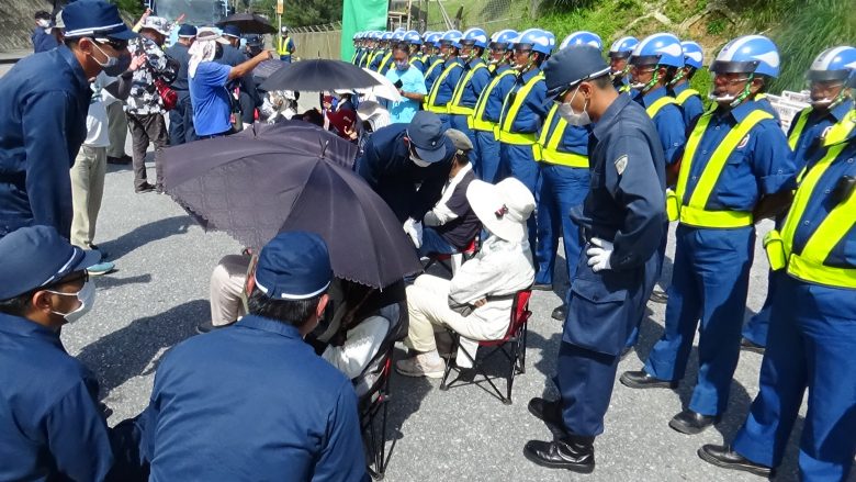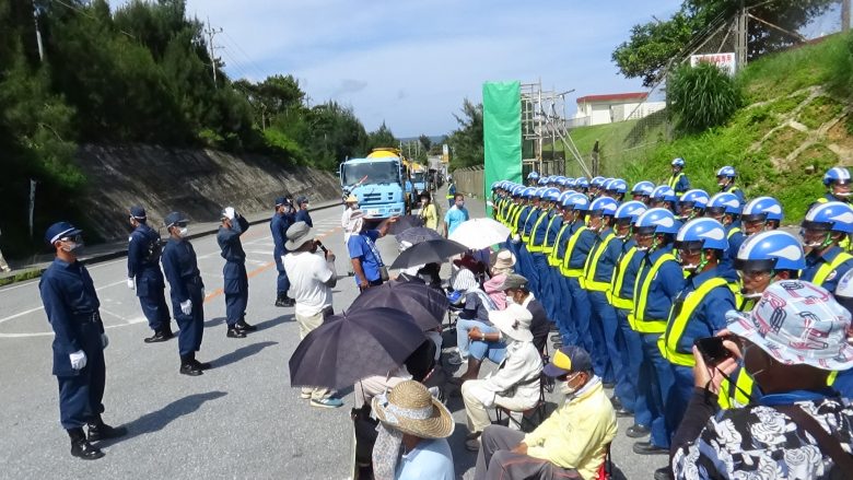 (In front of the Camp Schwab Gate)