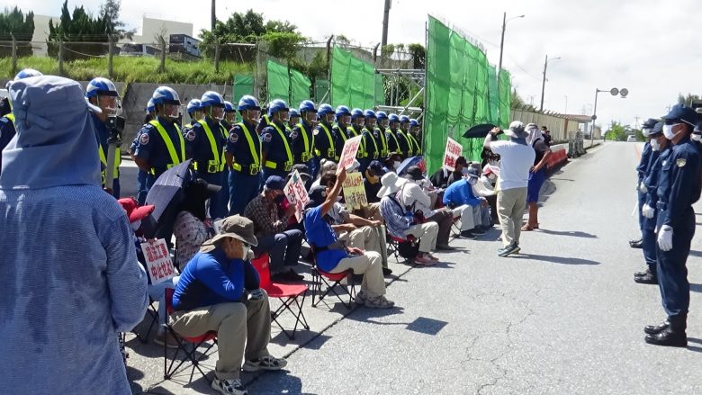 The temperature was about 30 ℃. The sun was still strong. About 40 citizens resumed the sit-in in front of the gate at 8:30 a.m. The participants talked about the fact that Kastunobu Kato, chief cabinet secretary of the new Suga regime, visited Okinawa the day before yesterday to speak with Governor Deny Tamaki. But they did not agree on the problem of a new military base. As his predecessor in the Abe regime did, Mr. Kato repeated, “Henoko is the only alternative we have.” As we anticipated, I am afraid that the Suga regime will be more relentless on the Okinawa issues.The citizens chanted slogans, bracing themselves to face a more difficult future.