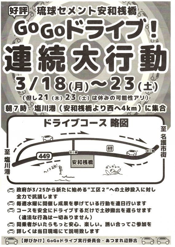 Ryukyu Cement Pier in Awa for GoGo Drive! Intensive Action Meetings Abe Administration has ignored the result of the Prefectural […]