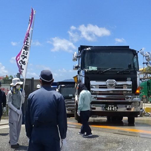 ヘリ基地反対協の安次富浩さんが、「この異様な政府のやり方は決して認められるものではない。みんな団結して、抗議を強めていこう」とスピーチ。ゲート前リーダーの山城博治さんもマイクを持ち、激しく政府を非難した。早ければ来週にも埋め立て工事が再開されるもようだ。