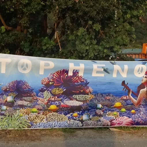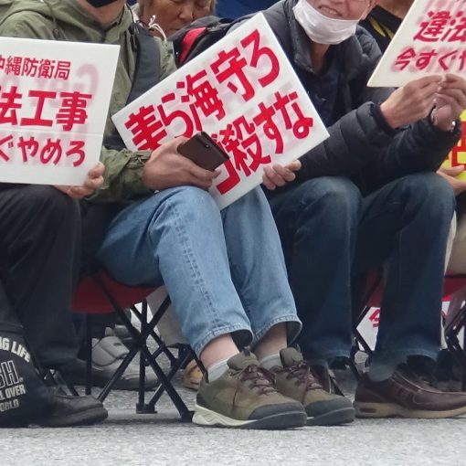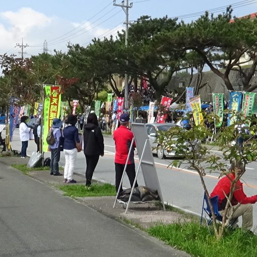 きょうにでも工事が再開されてもおかしくない日。朝9時に20人が工事用ゲート前で座り込んだ。時間が経つにつれ参加者が膨れ上がり、午後1時には韓国から訪れたキリスト教団体の20名も加わり90人に。