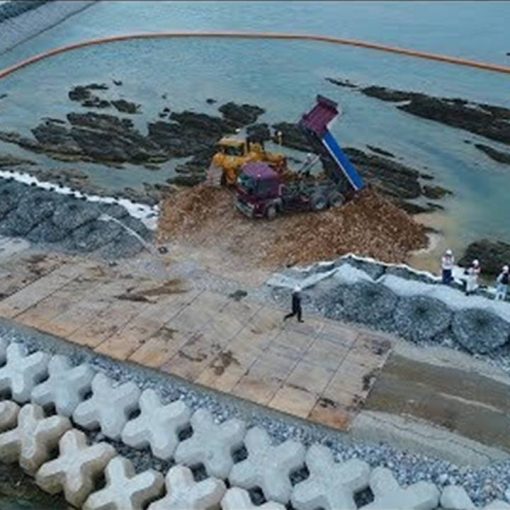 7 傾斜堤護岸用石材を海上搬入したこと 事業者は、傾斜堤護岸用石材の運搬方法について、環境保全図書の「船舶・建設機械 稼働計画」の「傾斜堤護岸(護岸・中仕切)」部分に、石材の運搬方法として「ダンプ トラック」のみを挙げ、「ケーソン式護岸」部分の「ランプウェイ台船」のように、船 舶で運搬することについては記載していない(環境保全図書 6-1-3)。また、海上運搬す る種類として「購入土砂等」と記載し(環境保全図書 6-1-9 表-6.1.1.3)、「購入土砂等」 として、「埋立・地盤改良用に使用する購入土砂等(海上運搬)」と記載している(環 境保全図書 2-96)。すなわち、事業者は、傾斜堤護岸用石材を海上運搬することについ て、環境保全図書には記載せずに、沖縄県知事から埋立承認を受けたものである。また、 K-9護岸を桟橋として利用することについても、設計概要説明書には記載されていな い(設計概要説明書 P61)。 しかし、事業者は、前記留意事項4に基づく変更承認を得ずに傾斜堤護岸用石材を海 上運搬しており、留意事項4に違反したと認められるものである。 このように、環境保全措置の内容を変更せずに、K-9護岸を桟橋として利用して傾 斜堤護岸用石材の海上運搬を行った結果、水深の浅い海域に船舶が接近することによる 底質の巻き上げ等の新たな環境影響が生じるおそれがある。また、以下の9で述べるよ うに、環境保全図書を変更する際には環境影響の予測評価を改めて行う必要があるとこ ろ、本件では海上を航行する船舶が増加するにもかかわらず、ジュゴンへの影響等、事 業者は環境影響の予測評価を改めて行っていないことから、環境保全への支障が生じる おそれがある。 事業者は、「工事工程や計画は現時点における設定であり、実施の際には変更される ことがあり得ます。」とする環境保全図書の第6章冒頭部分の記載を踏まえ、当該稼働 計画の再検討を行ったと主張している。 しかし、本件承認処分に付された留意事項4は、「申請書の添付図書のうち、公有水 面埋立法規則…第8号(環境保全に関し措置を記載した図書)を変更して実施する場合 は、承認を受けること」としているところ、当事者は、環境保全図書の変更承認を得ず に環境保全図書に記載されていない傾斜堤護岸用石材の海上運搬を行ったのであるか ら、事業者の主張には理由がない。 また、事業者は、海上運搬に変更したことに伴う環境影響について、委員会から特段 の指導・助言はなく、沖縄県にも直接説明したと主張するが、環境保全図書を変更する 際には環境影響の予測評価を改めて行って本県の審査を経た上で変更承認を受ける必要 があるところ、事業者は、傾斜堤護岸用石材の海上運搬に伴う環境影響の予測評価につ いて本県の審査を経ていないのであるから、事業者の主張には理由がない。