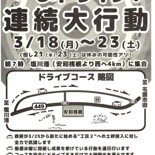 (県民大会 – 1万人が「民意は示された」「土砂投入はやめろ!」)