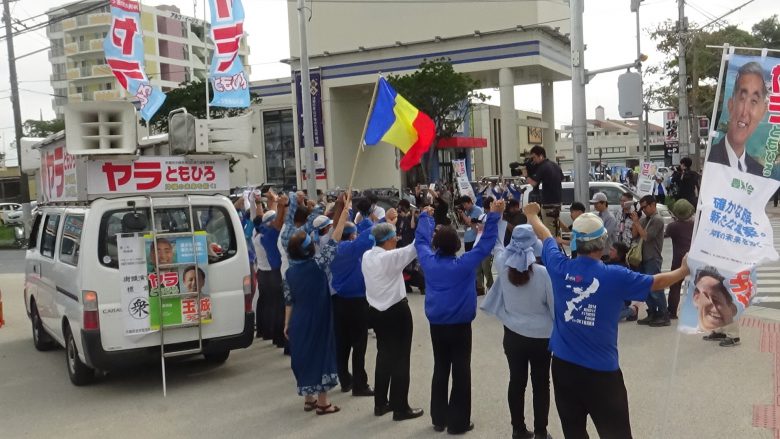 午後、フォークの日(4月9日の語呂合わせ)が開催され、まよなかしんや、知念良吉ら著名な歌手が平和を願い、持ち歌を披露した。玉城デニーの知事当選で空席となった衆議院議員沖縄3区の立候補者、屋良朝博(やらともひろ)さんもあいさつに訪れた。きょう大事な選挙戦の火ぶたが切られた。