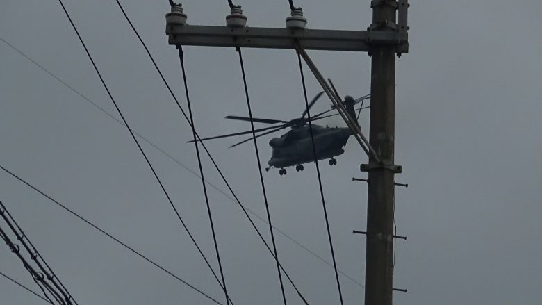 辺野古の空がうるさい。昨日も夕方5時ごろ、米軍のヘリコプターが住宅地上空で低空飛行訓練を繰り返していた。パイロットの姿さえ認識できる低空飛行だ。米国では住宅地での低空飛行訓練は許されず高度制限もあるが、沖縄では自由気ままに訓練をしている。