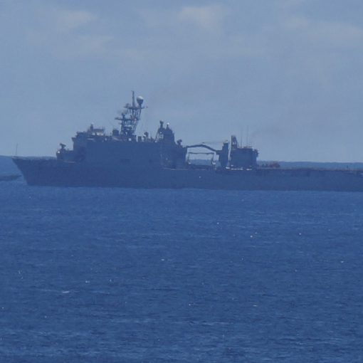 採石場からの土砂搬入と構内にある土砂の積み込みで、ダンプ619台分の土砂が運搬船に積み込まれた。3隻が大浦湾に向け出港した。