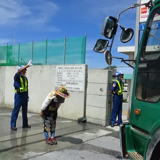 塩川桟橋の作業がないため安和に50人近くが集結し、ダンプが出入りするゲート前で終日抗議を続けた。GoGoドライブのメンバー13人も加わり、ダンプの運行を大幅に遅らせた。11時ごろからはなぜか土砂を積んできたダンプ約20台を引き返させ、桟橋内に積み置きしてある土砂を優先して運搬船に積み始めた。雨で土砂(実際は赤土)が海に流出するのを心配しての対応か。市民や沖縄県が防衛局に再三再四、赤土流出の防止対策をとるよう強く求めてきた結果とも言えそうだ。積み置きの土砂はこの日、すべて片づけられたもよう。136台が土砂を搬入した。台風のため陸も海も今週はこれで作業は中断される。