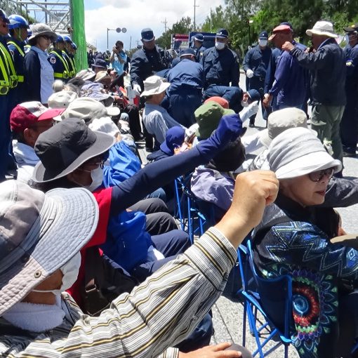 台風が過ぎ去って再び工事が始まった。しかし抗議に来る人の数が衰えることはない。先週土曜日には700人が集まって毎月第一土曜日の大集会を行った。沖縄選出の国会議員4人も参加し、次々と明らかになる防衛局の工事の違法性を細かく指摘、強行する安倍政権への批判が相次いだ。「追い詰められているのは政権側だ。怯まず抗議を続けよう」と気勢を上げた。