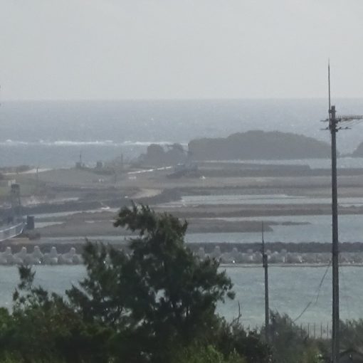 抗議船で工事状況を監視した。土砂投入作業は確認されなかったが、K1護岸で新たに消波ブロック(波の力を減少させるブロック)を設置する作業が行われていた。