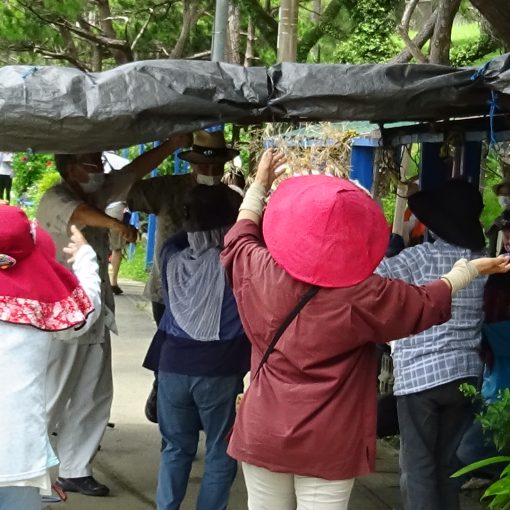この日も広島や大阪の組合員や日本大学の学生ら60人余りが抗議行動に加わり、ゲート前は人であふれた。相変わらずの猛暑だが、機動隊に排除されて車輛が基地内に入った後も繰り返しゲート前をデモ行進した。3回にわたり計217台の車両が資材を搬入した。