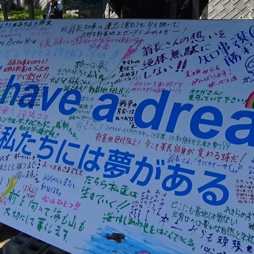 台風18号の発生でまた、工事が止まった。午前中2回、生コン車など48台が基地内に入ったが、それで終了。県外から初めて応援に来た人たちは「意気込んで座り込みに来たのに、ちょっと残念。作業がないのはいいことだけどね」と苦笑いしていた。