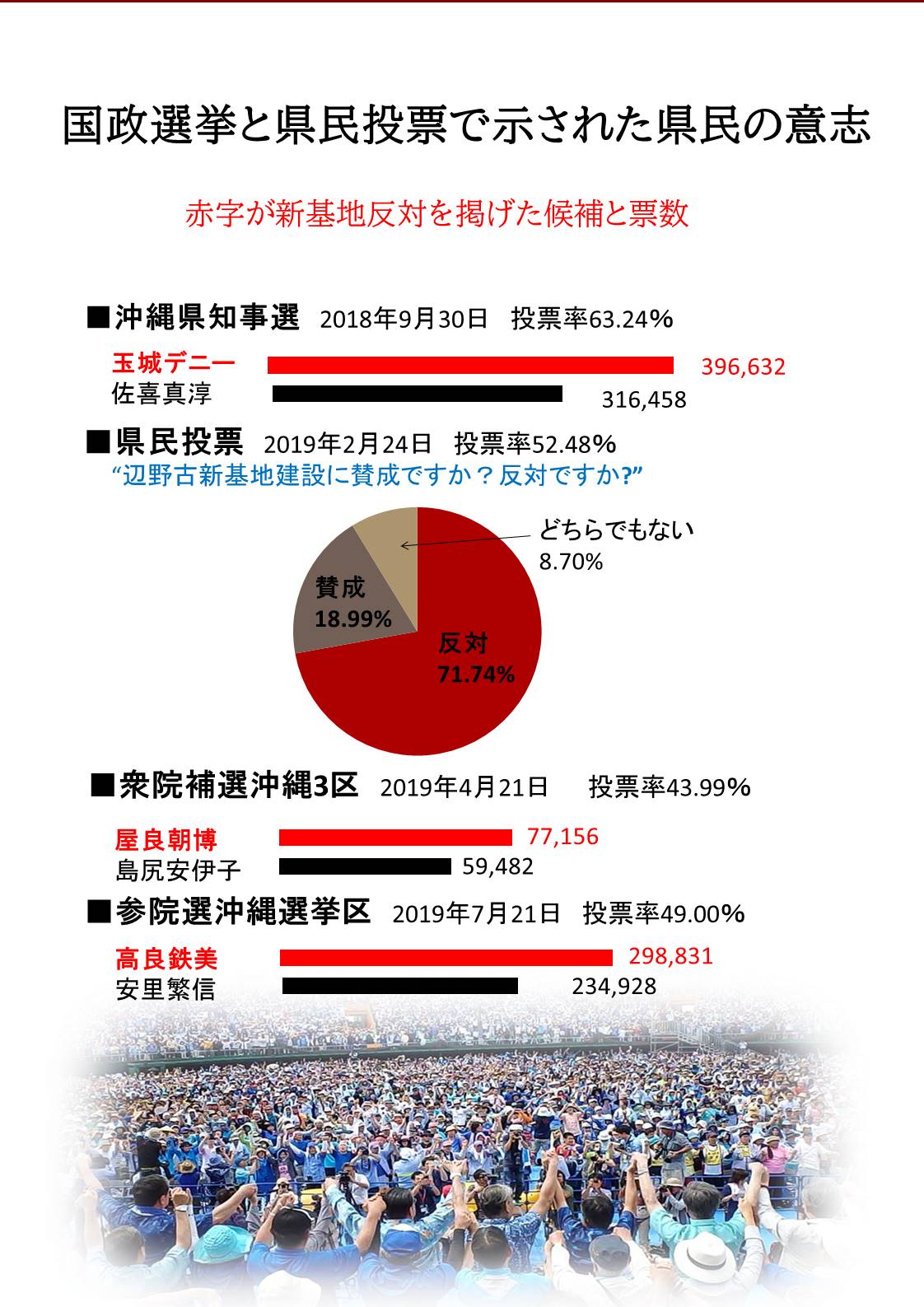 民主主義を踏みつけている点では沖縄はその典型。昨年来の国政選挙などで「新基地反対」を掲げた候補が圧勝しているにも関わらず、工事は強行され続けている。安倍政権はなにもかも壊している。