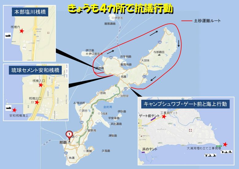 しかし、海が毎日壊されているのも事実。安心は禁物。一刻も早く止めなければならない。そんな思いを共有し、きょうも4カ所で市民が抗議を続けている。