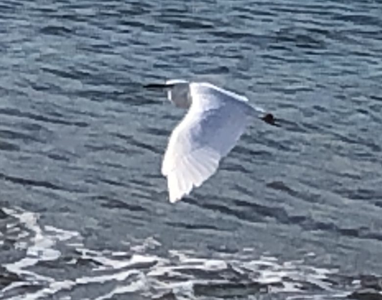 カヌ―チームも11艇で桟橋に繰り出して、運搬船の出港を1時間以上止めた。珍しく浜辺で白鷺が舞っているのを見つけた。