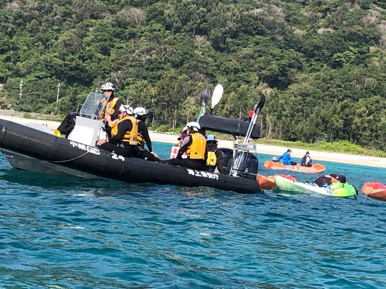 海上ではカヌー10艇、ゴムボート2隻で運搬船に張り付き、午前中の出港を1時間近く遅らせた。全員が海上保安官に拘束され浜に連れ戻された。午後も海上に繰り出し、2隻目の運搬船の出港を40分遅らせた。