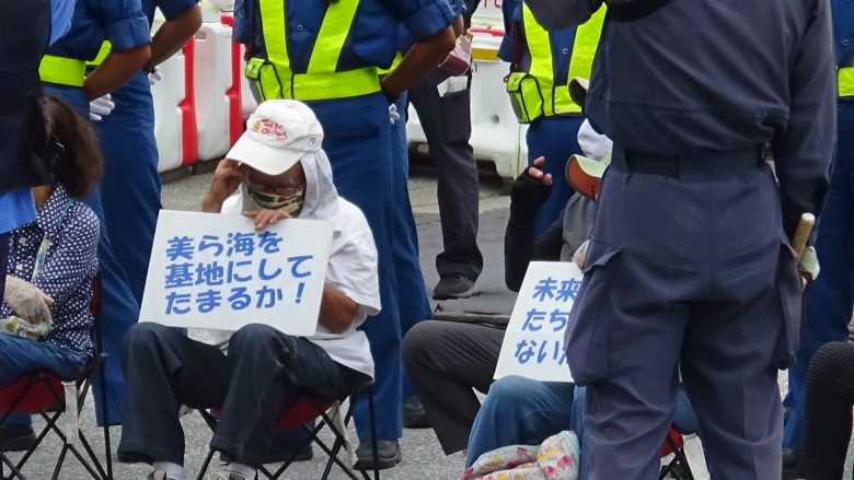 約30人が朝8時40分から座り込んだ。通り過ぎる車に手を振る人、防衛局職員に抗議する人、談笑する人などさまざまだ。いつものように歌を歌い、シュプレヒコールを唱和し、機動隊に排除されるまで抗議の意志を示した。午前午後3回にわたり計250台がキャンプシュワブ内に資材を搬入した。