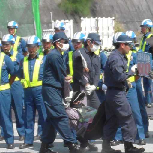 安和桟橋出入口における機動隊H中隊長の個人名呼び捨てや長時間の道路通行規制に抗議し、市民13人が24日、公安委員会に苦情申し立て、沖縄県警察本部には質問書を提出した。H中隊長の拡声器を通しての個人名呼び捨ては10月ごろから続いており、市民らは「私たちを犯罪者呼ばわりする悪質な行為。個人名呼び捨ては警察法や国家公務員法に明らかに違反する」として行動に出たもの。