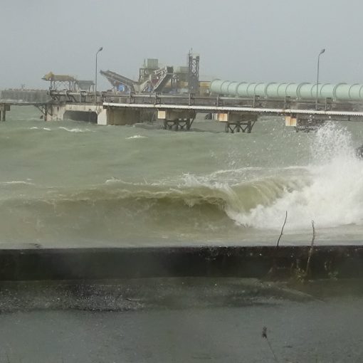 ダンプ835台分の土砂が運搬船3隻に積み込まれた。