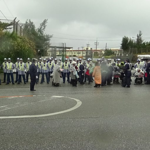 那覇県庁前での集会のためか、ゲート前に座り込んだのはわずか15人ほど。別の場所で新基地反対の大きな集会があろうとも、ゲート前で座り込む市民の姿が途絶えることはない。抗議開始から2357日目。