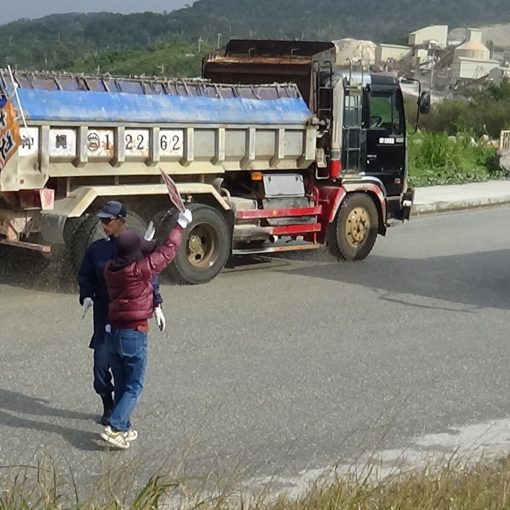 항의선 8척, 카누 49대, 총 100명이 매립 현장에 나섰다. 오전, 방위국은 k9 호안에 착안한 램프웨이 대선에서 덤프트럭으로 토사를 운반, 헤노코 연안 2-1구역에 토사 투입을 강행했다.