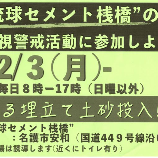 오후부터 토사 투입이 시작됐다. 10여명이 항의. 덤프트럭 50대 정도가 채석장에서 잔교로 토사 운반을 반복했다. 세 시간에 걸쳐 240대가 잔교에 들어갔다. 4시 반쯤 토사를 가득 실은 운반선이 헤노코로 향했다.