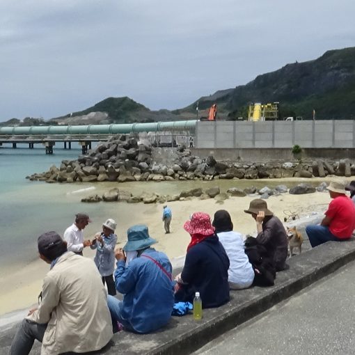 초여름이 도래한 것 같은 따가운 날씨, 약 50명이 아침 8시반 부터 연좌 농성을 시작했다. 오전 오후 3번에 걸쳐 총 255대의 차량이 기지내에 자재를 반입했다. 레미콘이 많다. 방파제 주변에 설치할 테트라포드를 만들기 위해서라 보인다. 스리랑카의 대학교에서 학장과 부학장, 그리고 일본어과의 학생 2명이 왔다. 스리랑카에서도 헤노코에 관한 것은 잘 알려져 있다고 한다. 유창한 일본어로 잇따라 질문을 했다.