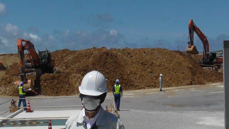 구내에 쌓아두고 있는 토사와, 덤프가 채석장에서 운반해 오는 토사로 운반선에 적재하는 작업은 단번에 가속화 되고 있다. 이날 담당인 평화시민 연락회의 단체30 명이 하루 종일 항의를 계속했지만 659 대분의 토사가 운반선에 적재되었다. 4 척이 오우라만(大浦湾)을 향해 출항했다.