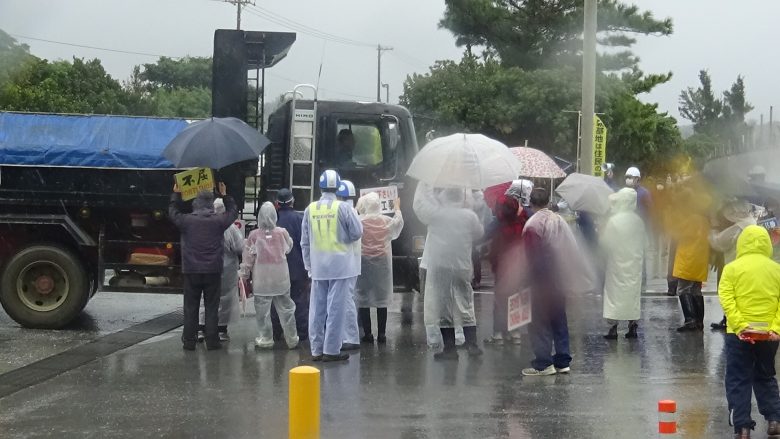 오키나와 평화 시민 연락회의30 명이 부두 입구와 출구에서 항의를 계속했다. 공사가 크게 지연되고 있는 탓인지 방위국 직원까지 3,4 명이 도로에 나와 항의하는 시민들에게 경고하고 있다. 지연을 만회하도록 관저에서 강한 지령이 나오고 있을 것이다. 컨베이어벨트가 고장나서 1 시간 정도 작업이 중지되었지만, 덤프 501 대분이 운반선에 실렸다. 카누 멤버 11 척은 운반선에 붙어 출항을 1 시간 정도 지연시켰다.