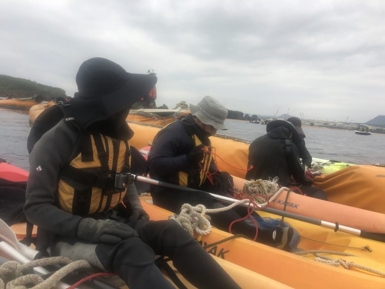 토사 운반선 5 척의 진입을 저지하려고 카누 6 척이 나서 입구 플로트에 밧줄을 묶었다. 해상 보안관에 당겨 벗겨될 때까지 1 시간 20 분 진입을 막았다. 모두가 바닷가에 연행되었지만 오후에도 다시 바다에 나가서 시위를 계속했다. 이날 토사 유실 방지제인 녹색 단립화제(団粒化剤)가 매립지에 살포되었다.