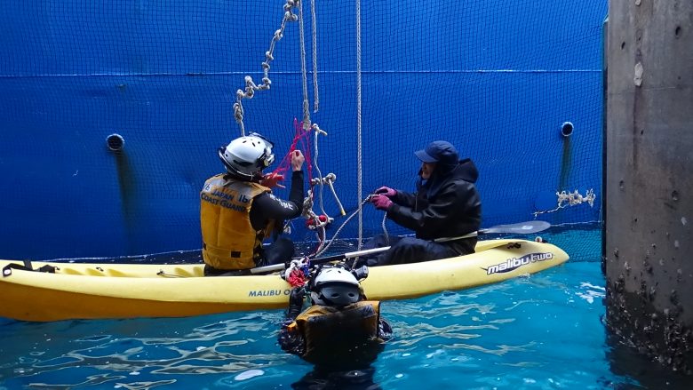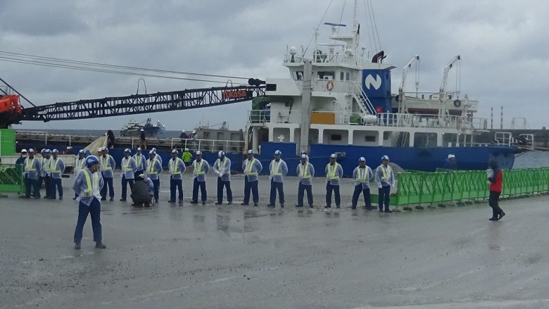 카누 팀은 10 정으로 바다에 저어 나가, 나룻터 밑에 카누를 그물로 묶여 운반선 2척의 출항을 방해했다. 해상보안청에 의해 밧줄이 절단당해 구속되었으나, 각각 40분 정도 출항을 지연시키기에 성공했다. 그 상황은 아래 동영상으로 확인할 수 있다.