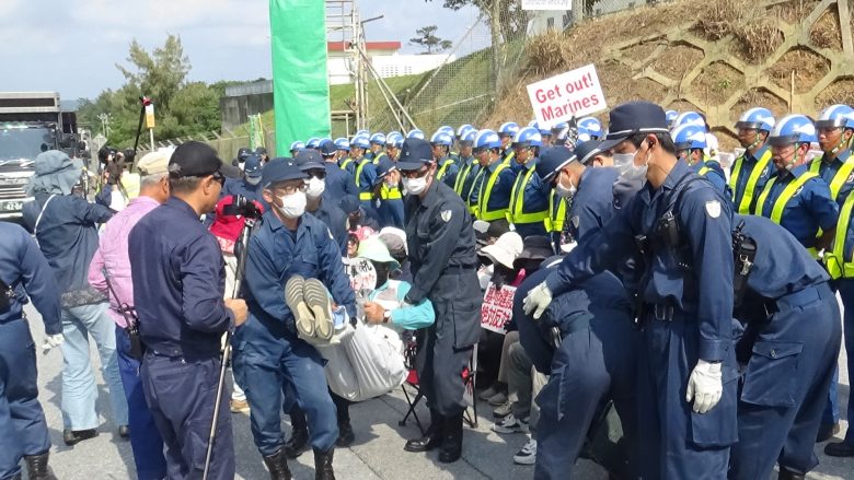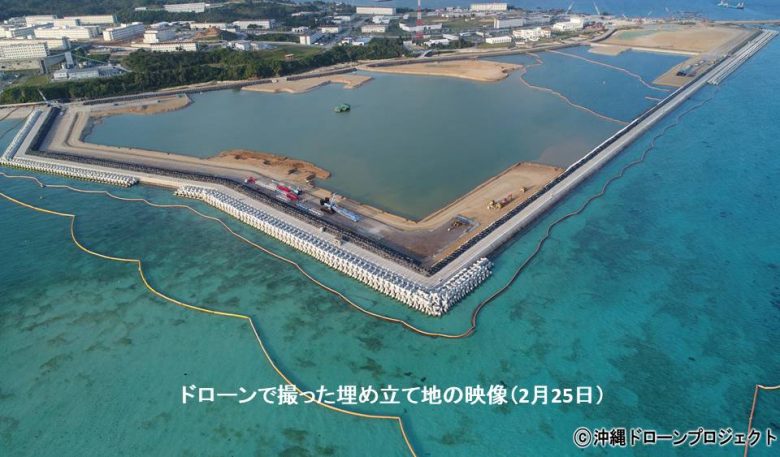 작년 5월에 성립된 개정 드론 규제법으로 신기지 건설 현장을 상공에서 촬영하기가 어려워졌다. 상공에서 찍은 영상으로 공사 현황을 전국에 소개해 온 오쿠히라 마사타카(奥平正孝) 씨(가명)는 이 규제법이 자기의 활동을 겨누는 것으로 생각하고 있다. “공사의 문제점을 연달아 밝혔으니까요. 그 문제점이 국민에 알리어지는 것을 정부가 두려워하고 있다고 볼 수밖에 없다”. 오키나와 지방 미디어를 포함해 전문가도 ‘헤노코를 표적’으로 한 규제법이라는 견해로 의견이 거의 일치한다.
