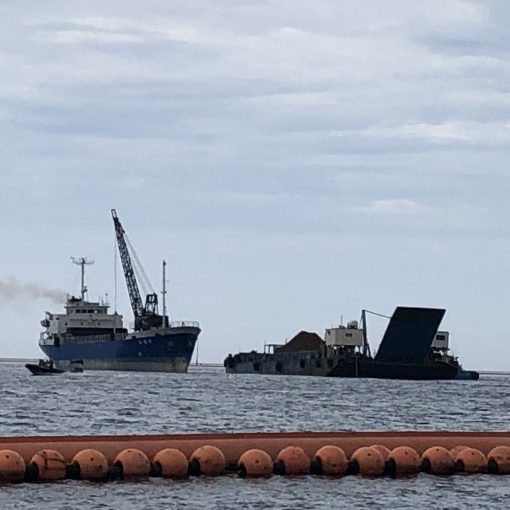 덤프차 728대가 토사를 반입하며 707대분이 운반선 3척에 실려졌다. 어제는 밤 8시까지 작업이 이어져 738대분의 토사가 반출되었다. “긴급 사태”가 선언되어서도 전혀 개의치 않는 듯이 토사 반출이 이어져 있다.
