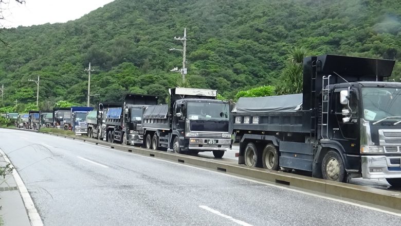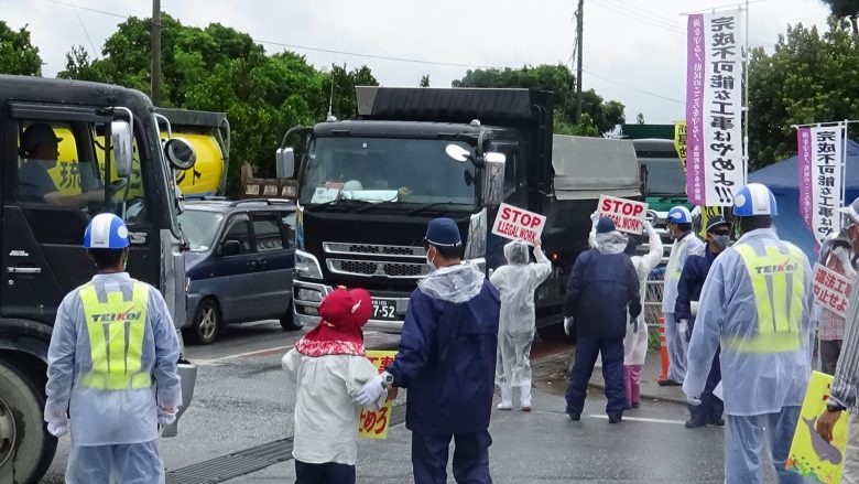 약 30명이 항의 행동을 전개했다. 여성들이 중심이 되어 노래와 발언을 하며 분위기를 띄웠다. 오전오후 세 번에 걸쳐 덤프트럭 138대가 기지 안으로 자재를 반입했다.