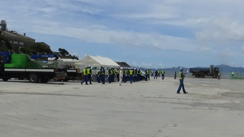 모토부초 멤버 4 명만이 하루 종일 시위했다. 덤프 412 대분의 토사가 바지선 3 척에 적재됐다.