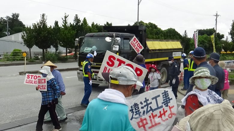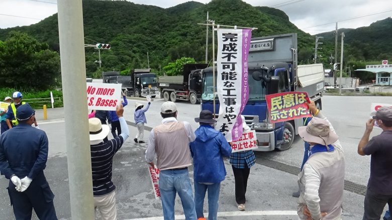 약 30 명이 게이트 앞에 앉아 항의했다. 배제하려는 기동대원은 시민과의 접촉을 피하기 위해 한 명씩 ‘설득’하여 이동시키기 위해 시간이 예상보다 걸린다. 30명을 모두 배제하기에는 30 분 이상 시간이 필요했다. 공사 차량 261 대가 자재를 반입했다.