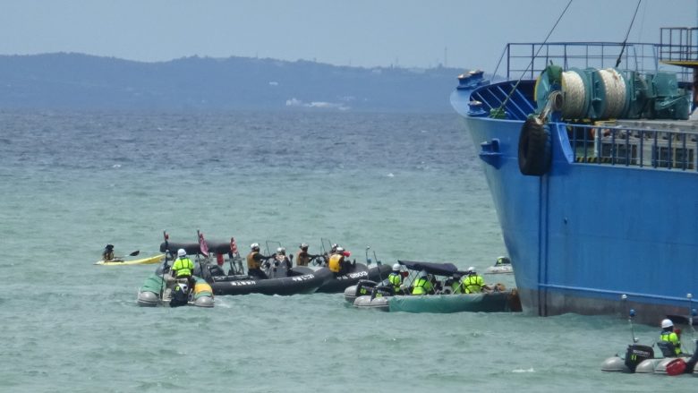 헤노코,오우라만[大浦湾] 매립용 토사가 채굴 허가없이 반출된 의혹이 떠올랐다. 오키나와평화시민연락회