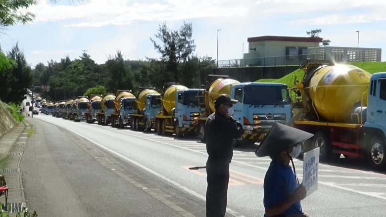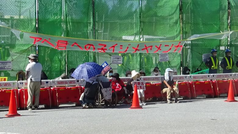 2014년 7월 7일에 시작된 게이트 앞 농성은 이날로 만 6년째를 맞이했다. 비가오는 날도 바람부는 날도 얼어붙은 아침에도 같은 폭염의 한낮에도 어깨를 부여안고 항의의 의지를 표해왔다. 2 년 전 겨울에 시작된 매립지 공사는 6년으로 완성될 예정이었지만, 토사의 양은 아직 3 %에도 미치지 않고 있다. 시민의 항의로 공사는 크게 지연되고 있으나, 이제는 연약지반과 활성단층이 발견된 것으로 그 완성자체가 의구스럽게 되었다.