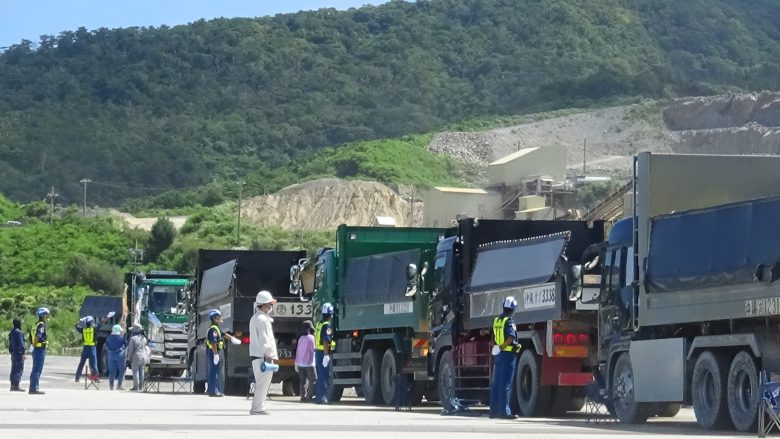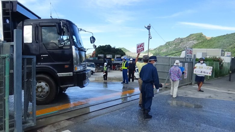 우루마시 멤버가 10여명 남짓 이른 아침부터 응원을 하러 달려와, 기동대가 올 때까지 덤프차들의 토사반입을 억제하였다. 그 후로도 부두 안을 천천히 걸으면서 토사를 쌓아올리는 작업을 지연시켰다. 햇살이 뜨거운 날이었지만 교대로 항의를 계속했다. 덤프차 394대분의 토사가 운반선 세척에 실렸다.